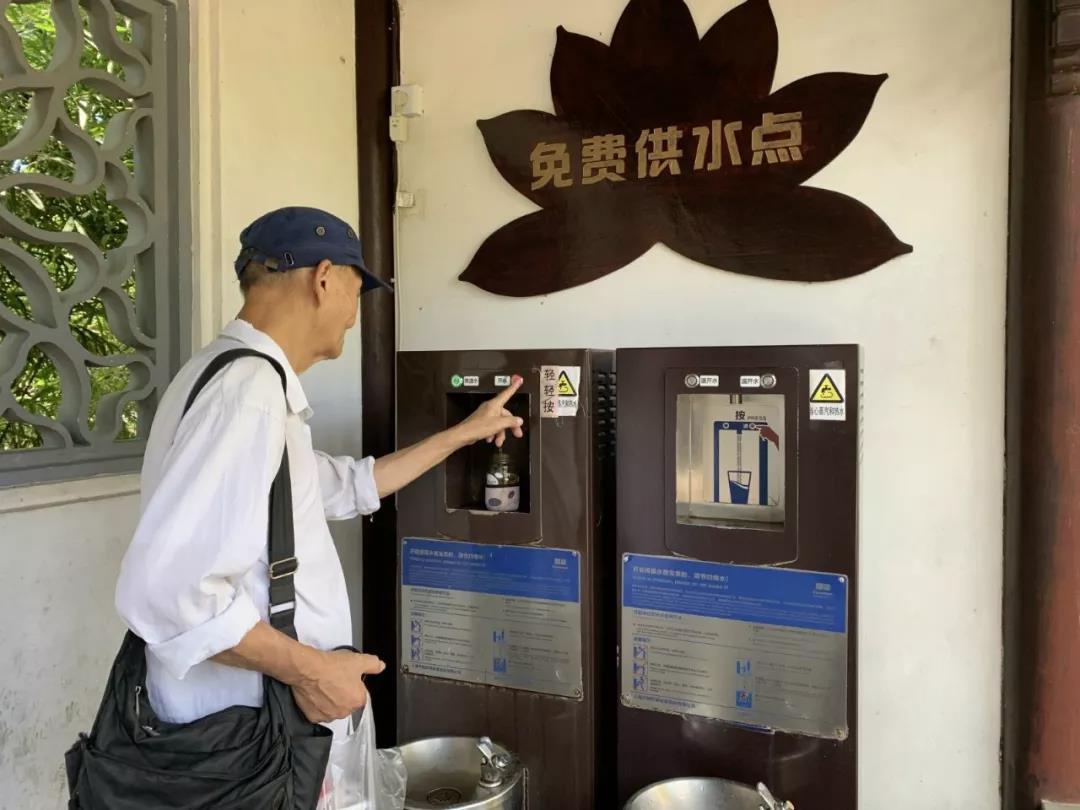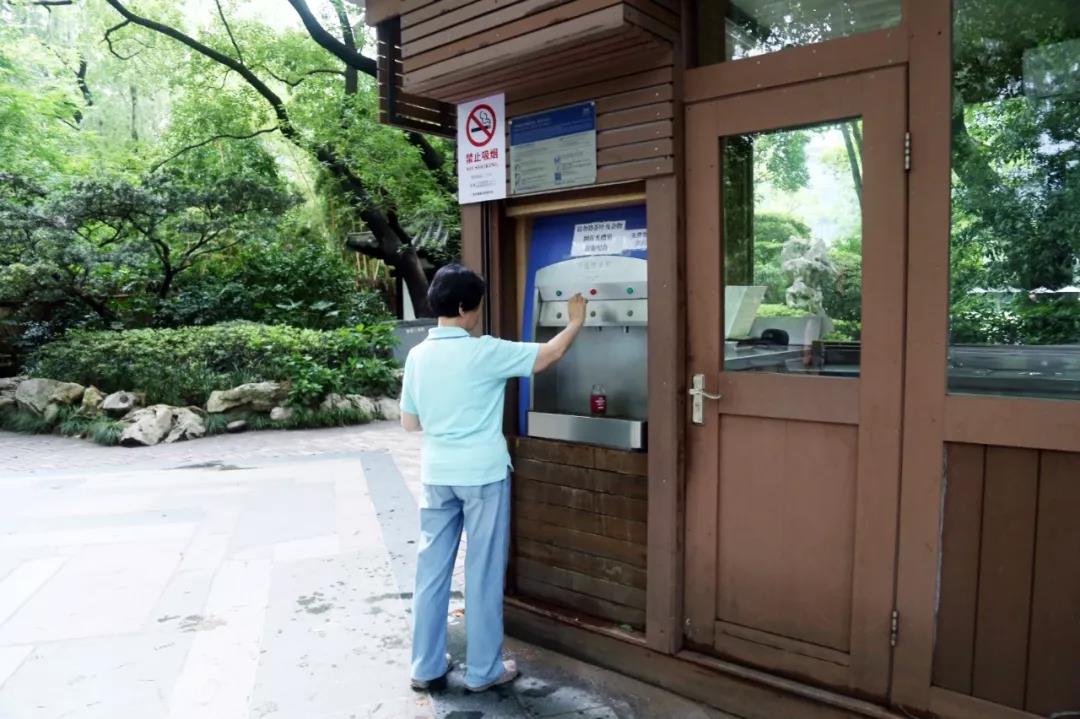 古猗園的開能公共飲水點,位于園區檢票入口邊的長廊上,設有直飲臺和接水口,能夠滿足不同方式飲水。