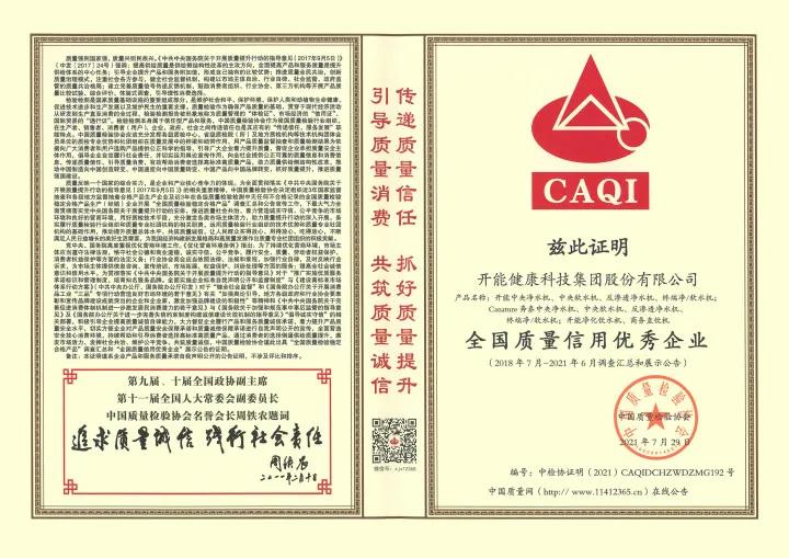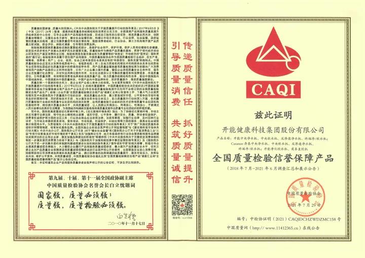日前,由中國質量檢驗協會主辦的2021年“質量月”主題活動中,開能健康榮膺「全國質量信用優秀企業」和「全國質量檢驗信譽保障產品」兩大獎項。作為國內專業權威的質量檢驗機構,中國質量檢驗協會由國家質檢總局主管,此次獲獎是開能健康對產品和服務質量誠信進行鄭重承諾,也為發揮優秀制造企業的示范引領作用傳遞強大正能量。