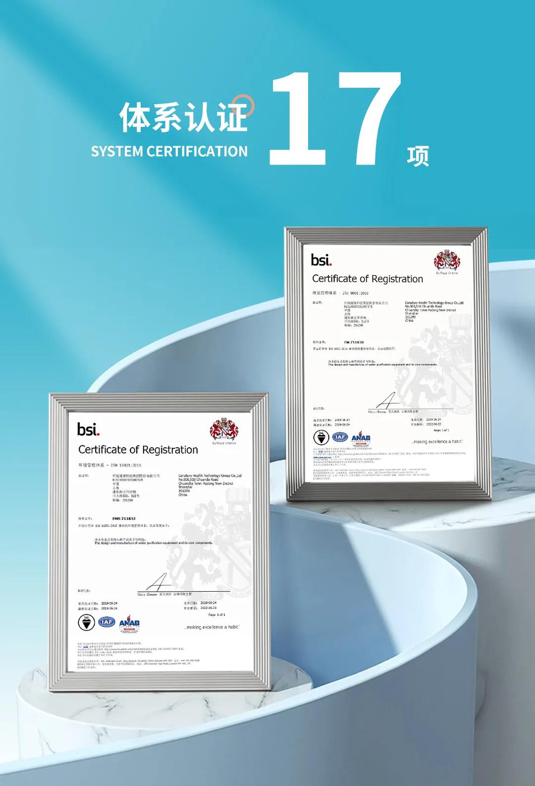 中國制造的產品要出口到全球其他國家,通常都要符合當地的安全和性能標準才可以在所在區域銷售。開能健康擁有覆蓋海外主流認證的產品認證體系,是開能產品力的體現,也為產品在海外銷售奠定堅實基礎。