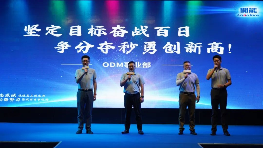 接下來五大業務部門核心成員以及保障支持部門代表,宣誓他們百日奮戰的目標和口號。開能健康展示著自己年輕敢拼的姿態,不斷突破新高的挑戰。