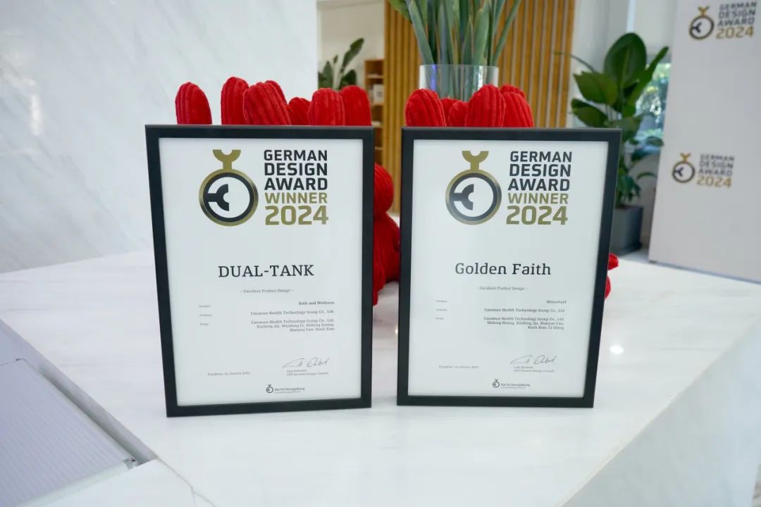 開能此次參與評選的全屋產品“黑金系列Golden Faith”一舉拿下2024年德國設計獎和2023年度美國繆斯創意與設計獎。德國設計委員會CEO Lutz Dietzold盧茨·迪超特先生一行親臨開能頒獎祝賀,并稱贊開能獲獎產品令人驚艷。