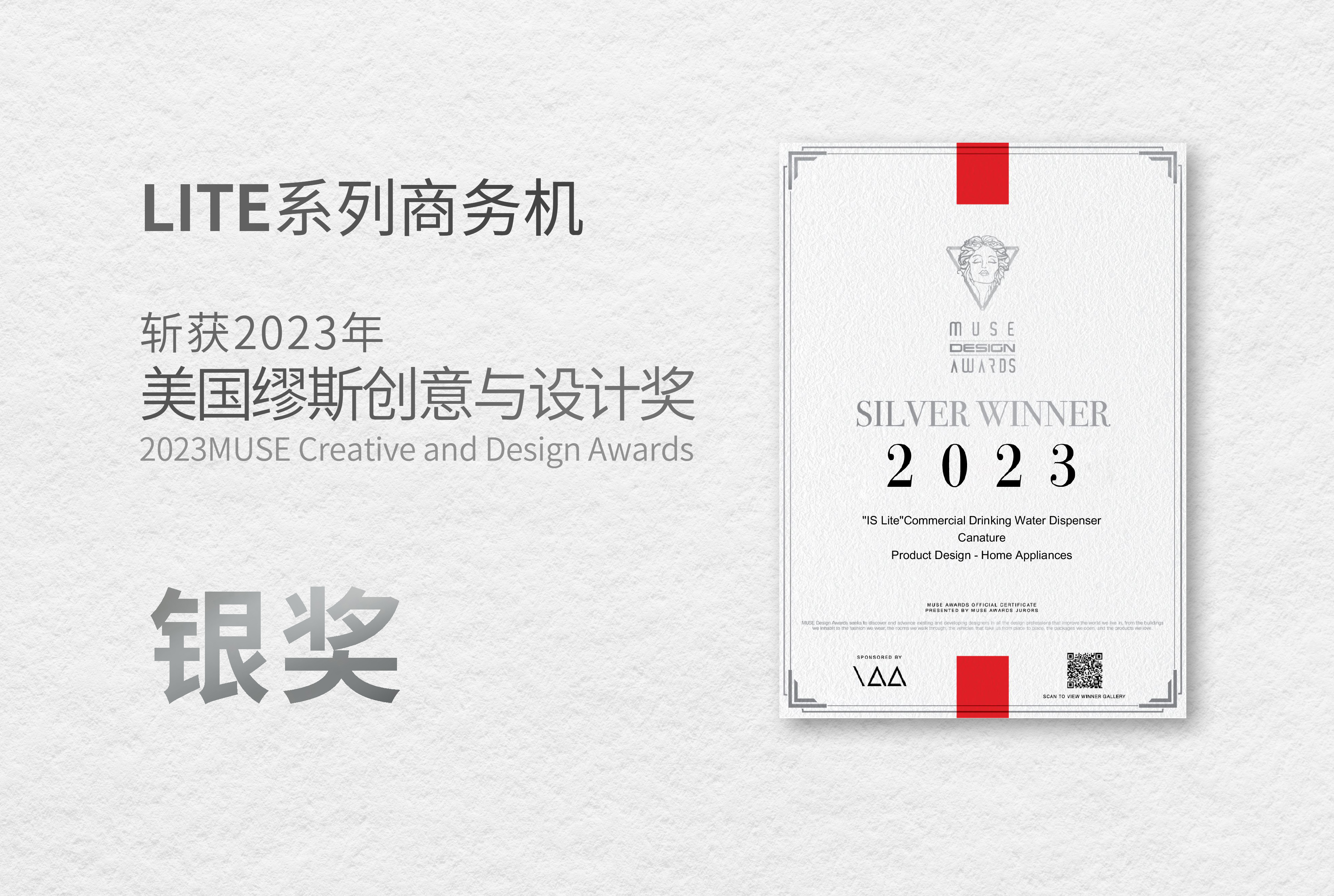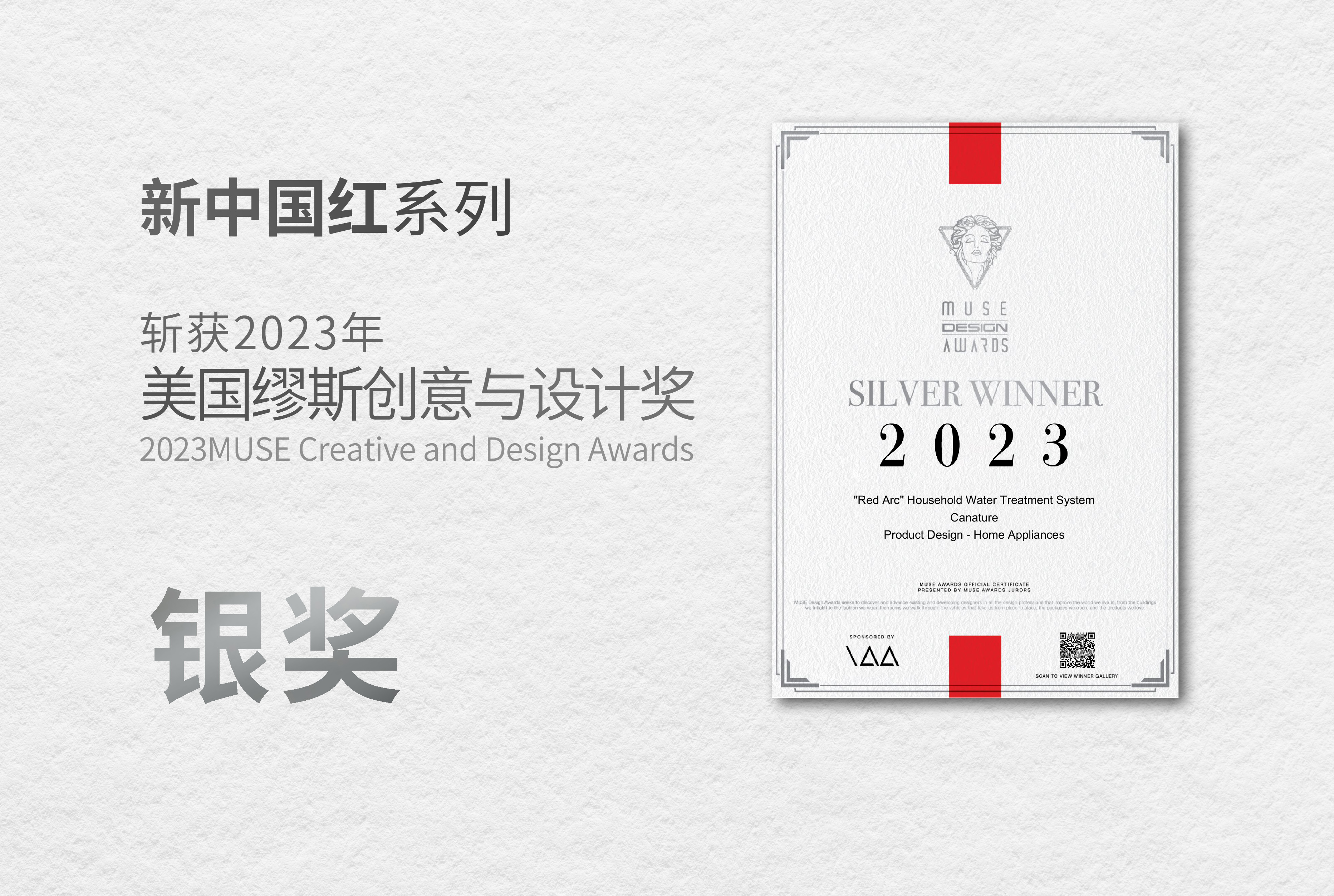 同時,開能自主設計研發的中國紅“RED ARC”系列榮獲紅棉中國設計獎和美國繆斯創意與設計獎(MUSE Creative and Design Awards),IT-PRO凈化飲水機榮獲當代好設計獎(Contemporary Good Design Award),“Dual Tank雙罐軟水機”,也斬獲同年的德國設計獎,再次證明了開能產品不僅品質卓越,設計也契合國際設計界的嚴苛標準。