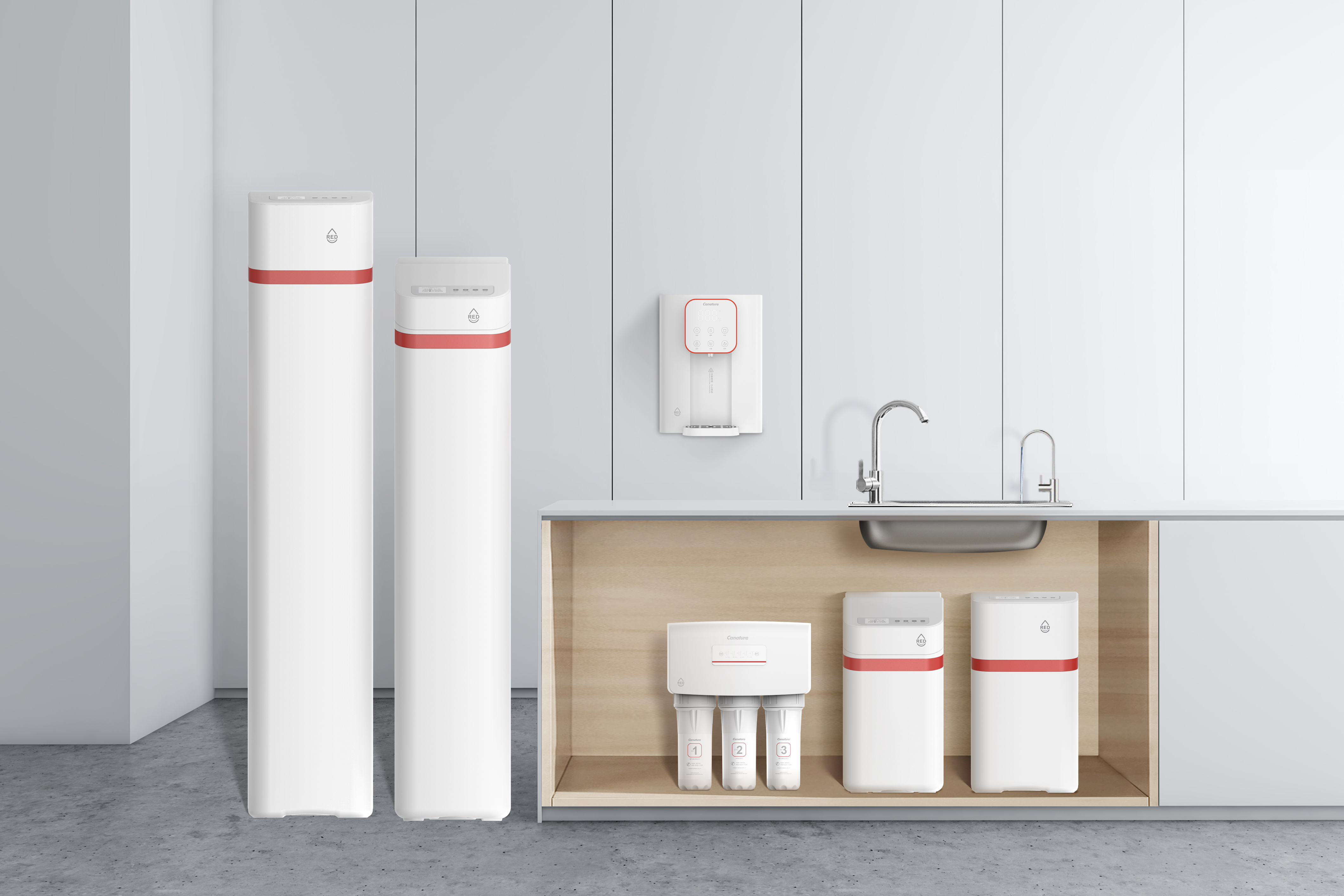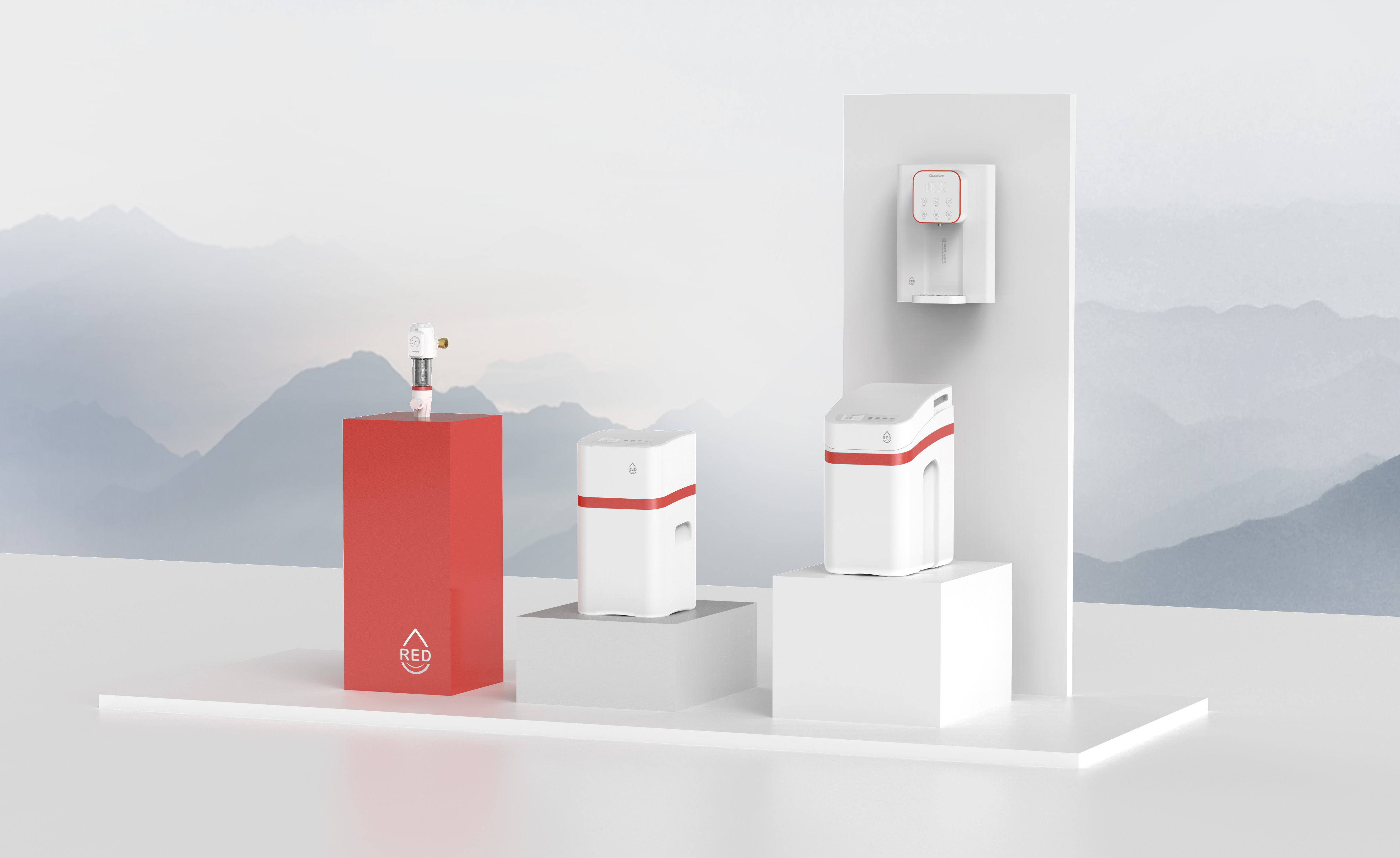 中國紅作為一種具有深厚歷史和文化底蘊的色彩,在中國傳統文化中占據著舉足輕重的地位。開能工業設計團隊以中國元素為創意靈感,結合中國紅、優雅弧線、品牌圖騰等塑造具有國潮風格、時尚外形、格調高雅的全屋水處理系統。這不僅是對傳統文化的傳承與致敬,更展示了中國傳統美學與現代科技相結合的獨特魅力。
