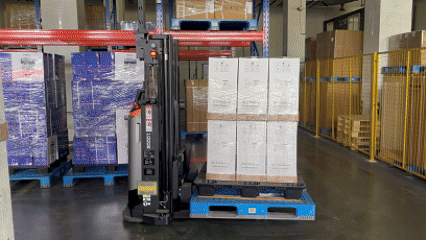3、產品生產打包完成,MES系統自動發出AGV搬運入庫指令,由AGV接駁入立體庫,立體庫調度系統指揮堆垛機將貨物存入指定的立體庫位;