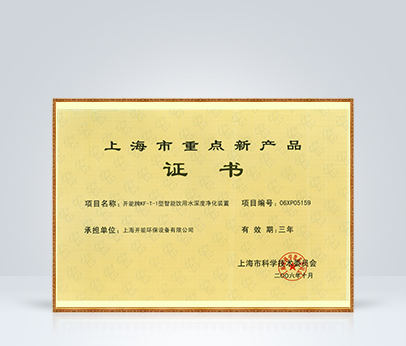 2006年開能牌KF-T-1型智能飲用水深度凈化裝置被評為上海市重點(diǎn)新產(chǎn)品