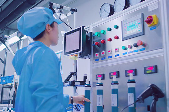 這是世界為數不多的定制化自動生產設備,從塑料原料到復合材料壓力容器,全部自動化生產,達到高質、高量生產水平。
